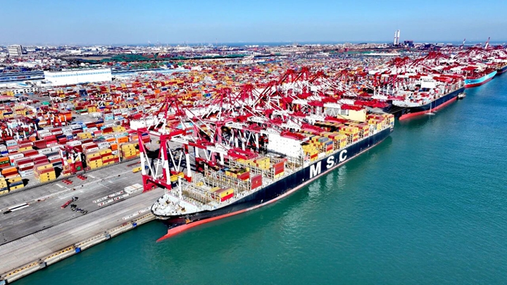 在建成全國首座全國產全自主自動化碼頭基礎上,青島港加速智慧港口迭代升級,推動人工智能應用中試基地成果轉化。今年以來,持續(xù)優(yōu)化、推廣自主研發(fā)的A-TOS(碼頭智能管控系統(tǒng)),13次刷新自動化碼頭裝卸效率世界紀錄;推進傳統(tǒng)碼頭自動化改造,通過研發(fā)碼頭智能體、攻關自動化裝卸關鍵技術,實現(xiàn)全場景、全流程、全機種自動化,助力集裝箱、紙漿、鐵礦石、糧食等貨種接連打破效率紀錄;打造“云港通”口岸線上服務平臺,實現(xiàn)“關港通”智慧查驗,應用全球首個港口服務大模型方舟TaaS,進一步提升了裝卸作業(yè)的服務體驗和決策效率。 智慧港口效率的提升離不開海關監(jiān)管服務的升級保障。青島海關充分發(fā)揮山東港口青島港在‘一帶一路’中的陸;ヂ(lián)優(yōu)勢,推廣“先期機檢”“抵港直裝”“船邊直提”等自動化作業(yè)模式,通過升級升級智能空軌、集裝箱順勢核重等智能化設施設備,將海關監(jiān)管無縫嵌入港口生產作業(yè),實現(xiàn)了海關與港口物流信息交互,為外貿企業(yè)打造了一條綠色、高效的出海物流通道。