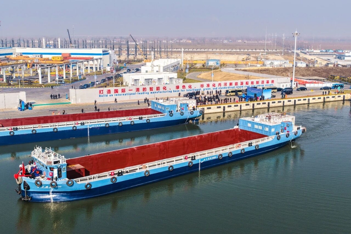 12月29日,在鄒城的白馬河畔,伴隨著5艘67.6m純電動多用途船的下水航行,濟寧能源集團與寧德時代電船科技有限公司“50艘純電動力船訂單簽約暨首批5艘多用途電船交付活動”順利舉行。山東首支規(guī);、成建制純電動貨船船隊將在京杭運河上投入運營,“電化運河”場景化應(yīng)用邁出實質(zhì)一步。